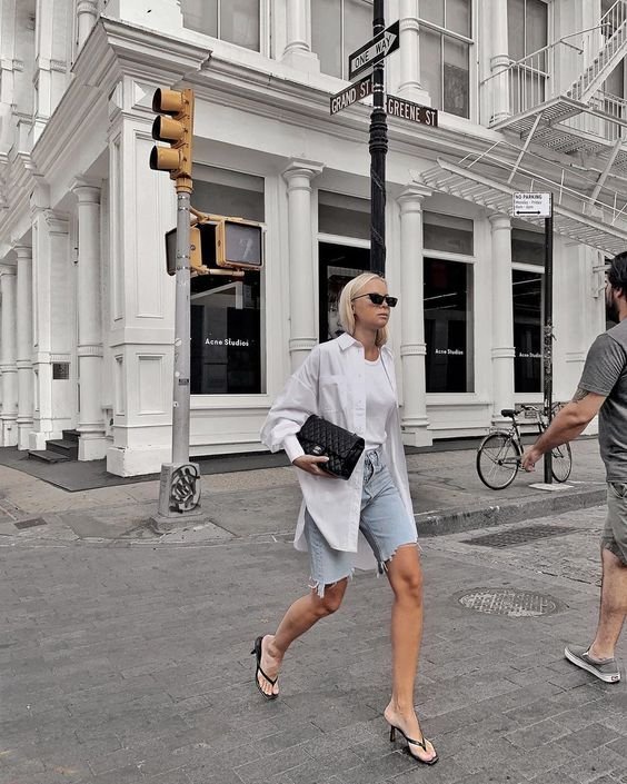 Как носить белую рубашку с шортами