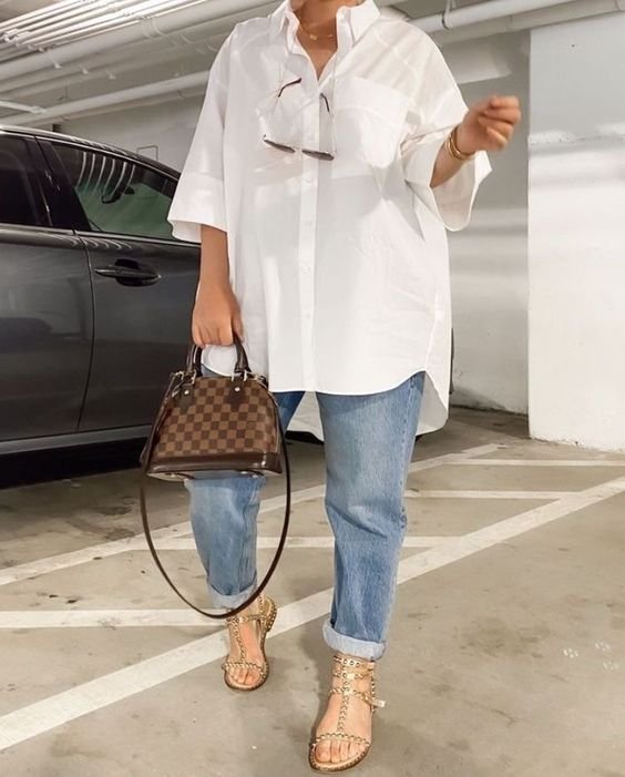 При условии грамотного комбинирования с брюками, джинсами, юбками, тренчами и жакетами рубашка органично впишется в ваш повседневный образ, подчеркивая индивидуальность и отменный вкус.Заправляйте оверсайз рубашку в брюки либо джинсы только спереди. Таким образом, вы убьете сразу двух зайцев: добьетесь эффекта легкой небрежности и очертите талию.