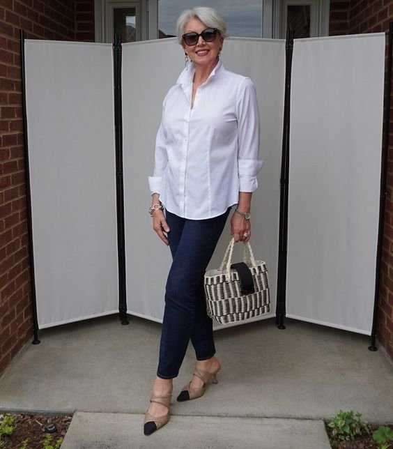 Белая рубашка с джинсами